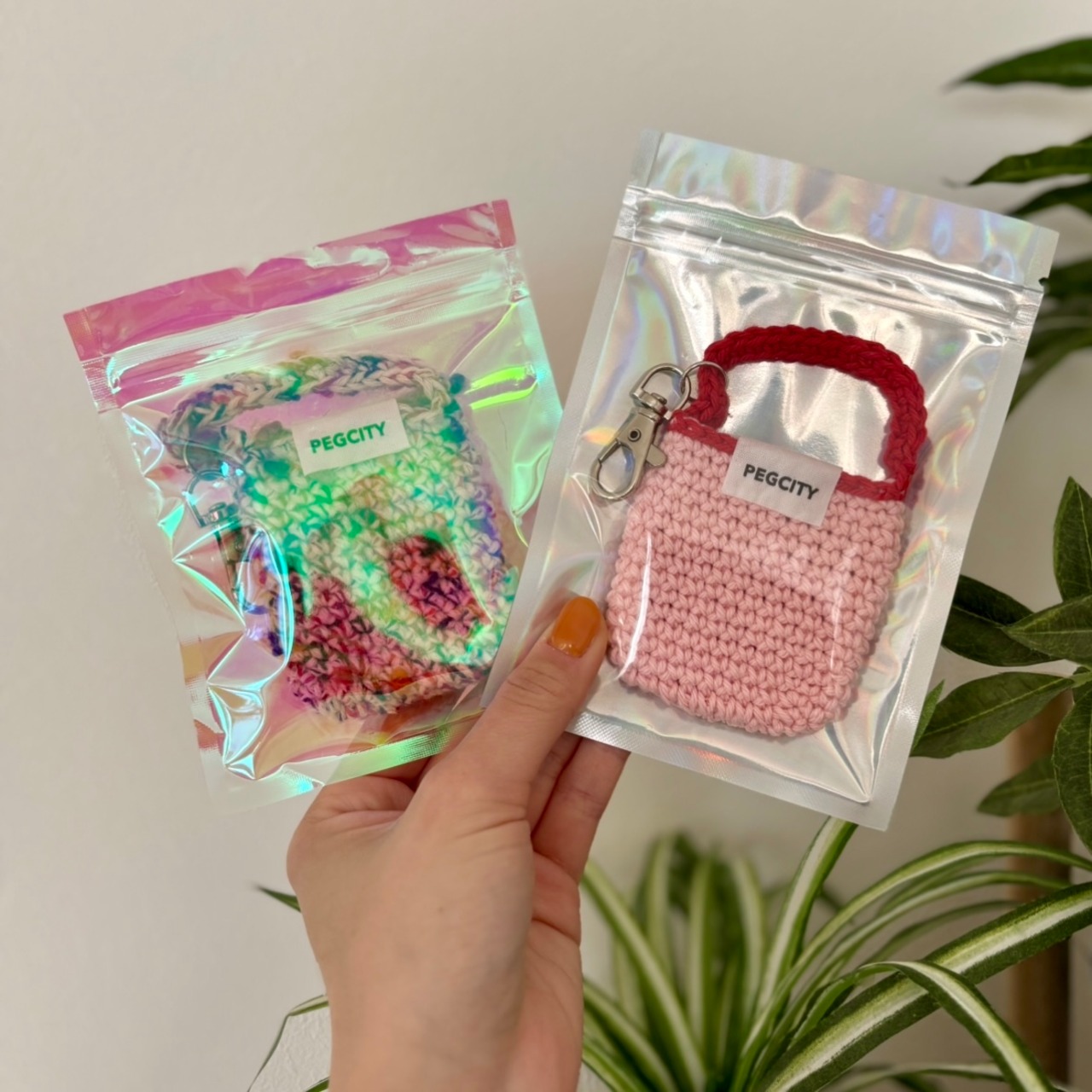 ひとつひとつ丁寧に編んだ、世界にひとつのミニポーチです。