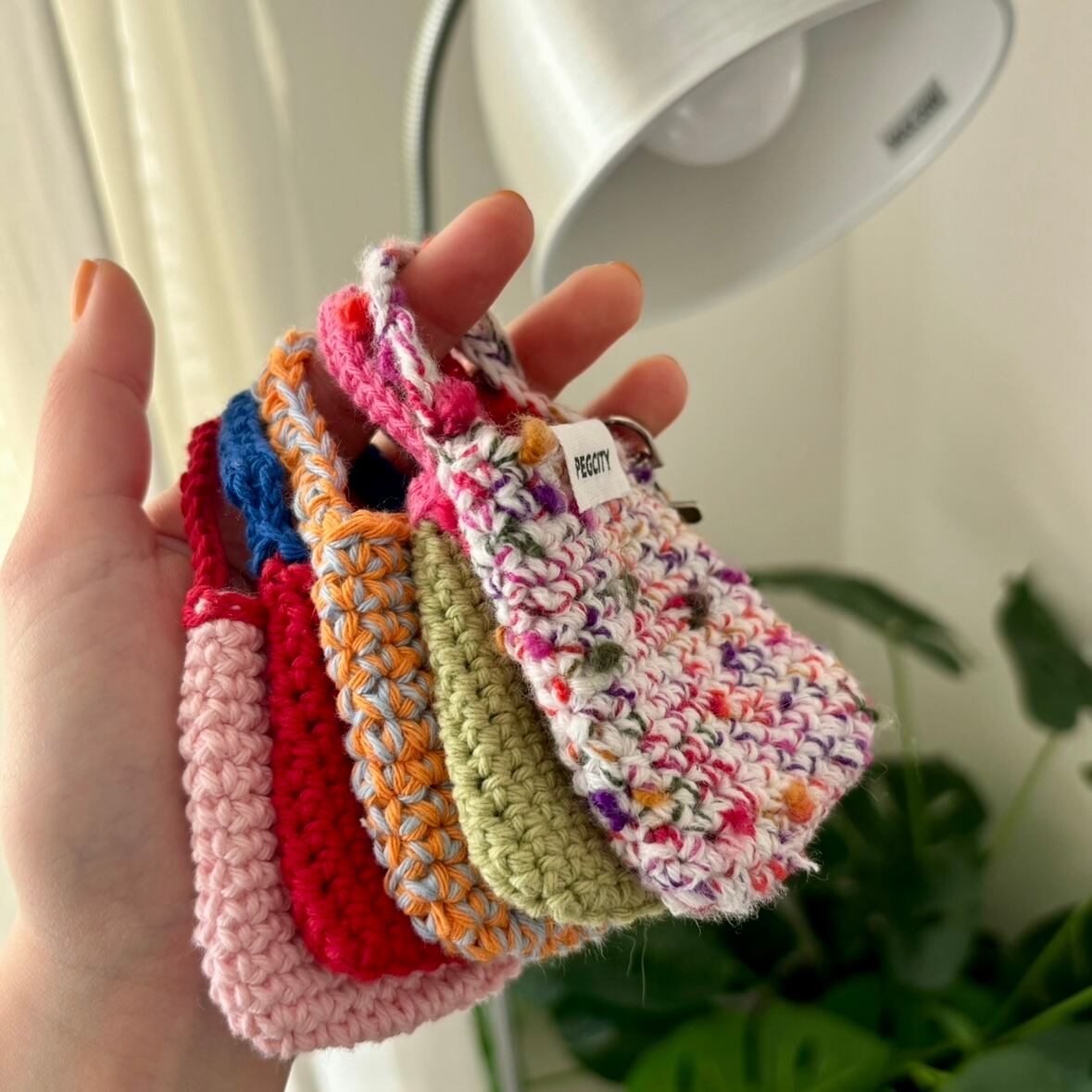 ひとつひとつ丁寧に編んだ、世界にひとつのミニポーチです。