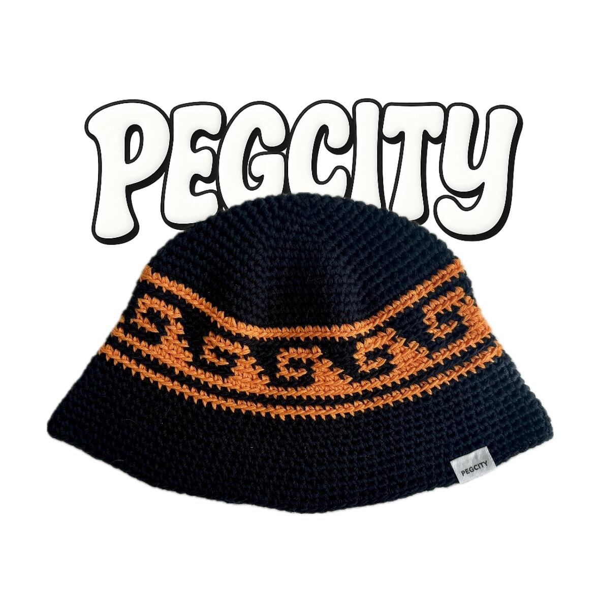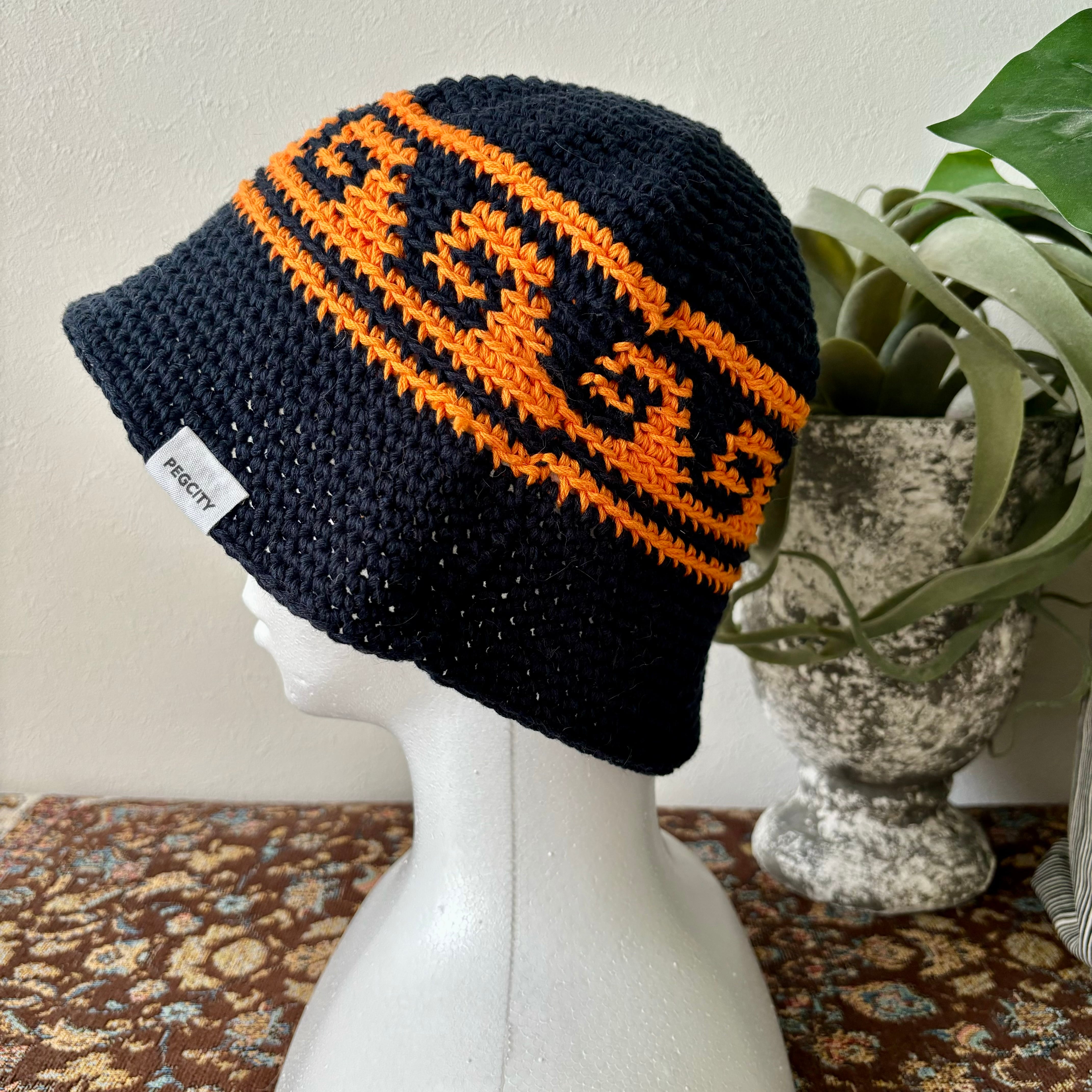 エッジの効いたストリート感強めに仕上げた手編みのクラッシャーハット。
