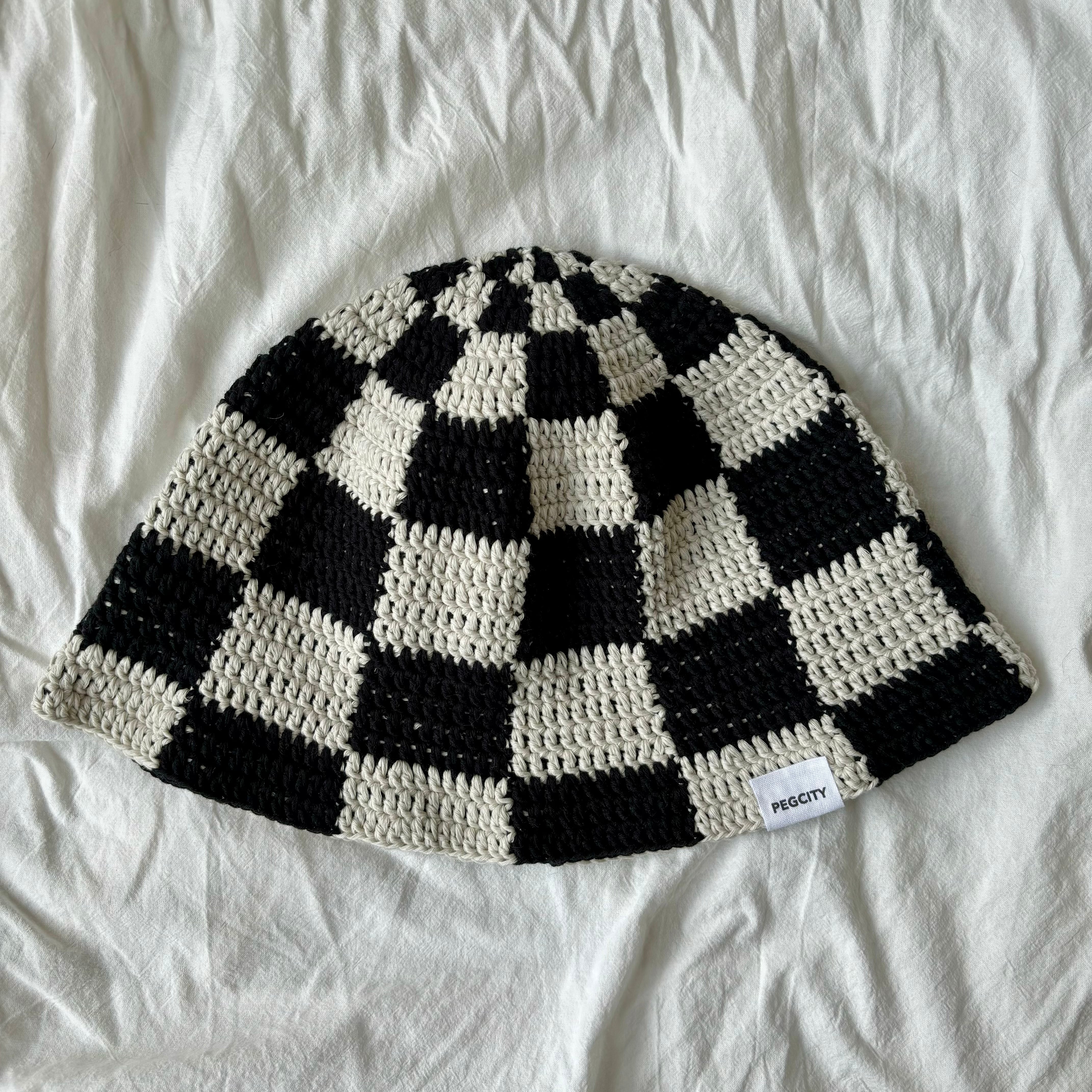 ブロックチェック柄のバケットハット。