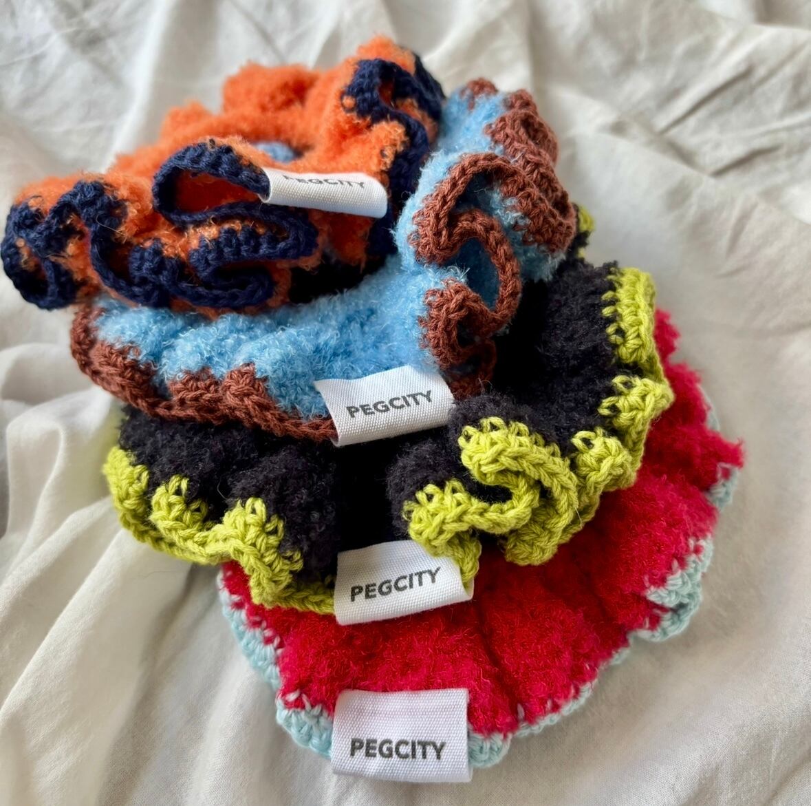 ふわふわ・さらさら・もこもこの手触りがクセになる、ファンシーヤーンで編んだオリジナルシュシュです。